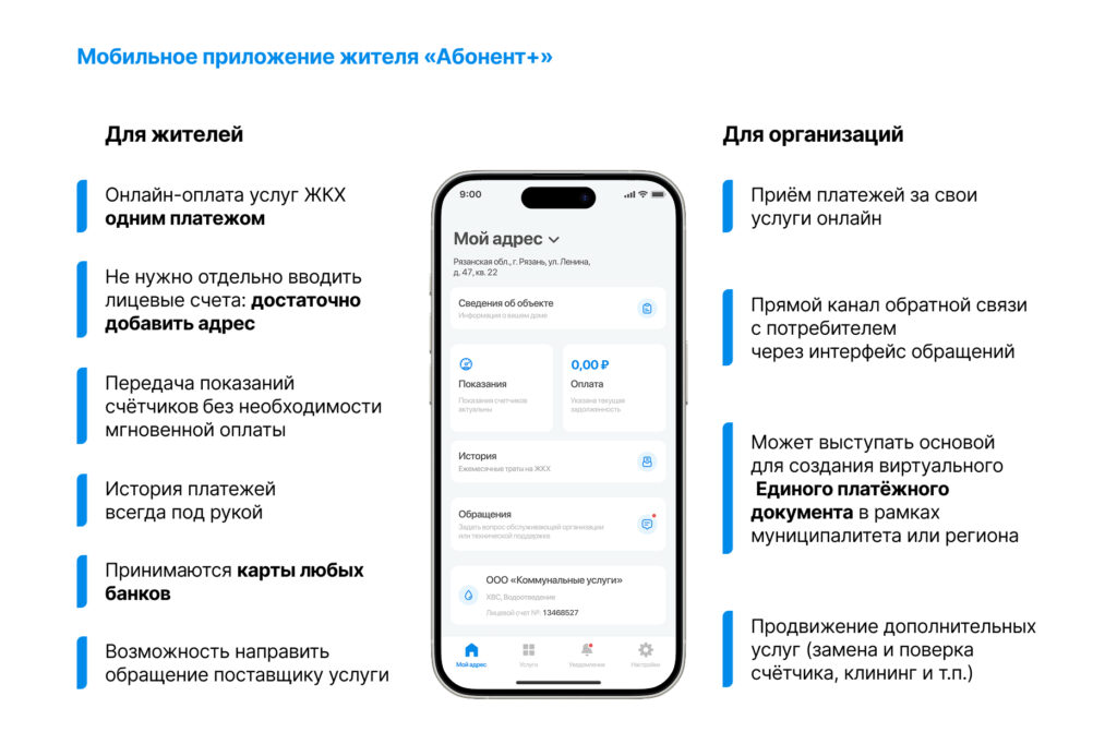Также «Абонент+» позволяет через систему обращений настроить канал обратной связи между потребителями и поставщиками услуг ЖКХ: потребители могут сообщать о проблемах и получать ответы прямо через приложение. Это позволяет снизить нагрузку на сотрудников, которые принимают жалобы от населения по телефону. Помимо этого, доступна функция адресных оповещений с точностью до дома: можно рассылать предупреждения о плановых и аварийных работах, а также другую полезную информацию.